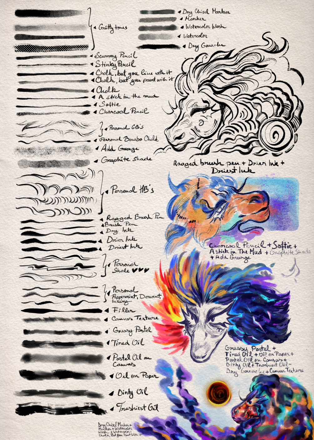 Howdy, here’s a set containing 60 brushes for Procreate made out of personal resources and default assets! There are brushes for sketching, inking painting as well as some toners and paper overlays!